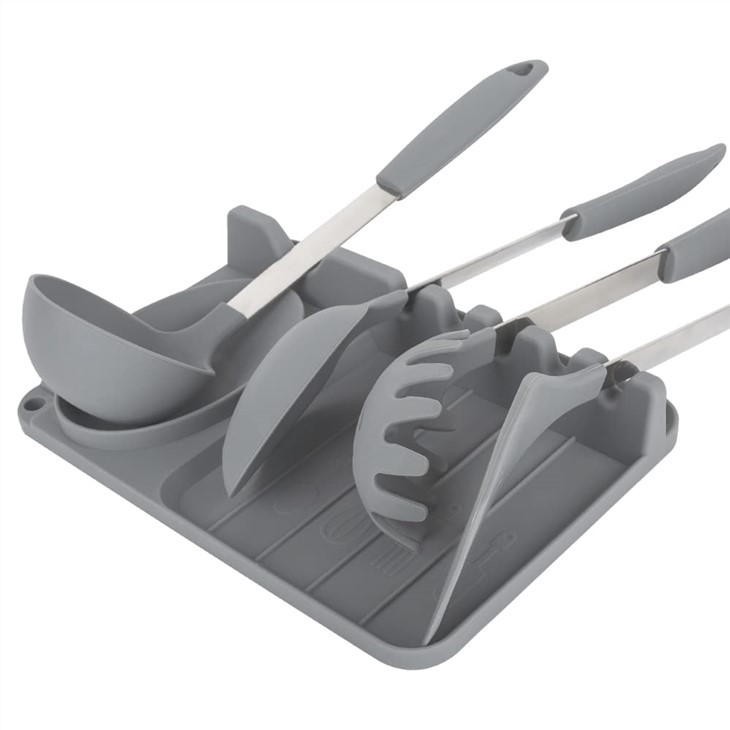 1. שומר על הדלפקים שלך נקיים בכל פעם שאתה מבשל - משענת כפית זו לדלפק המטבח מגינה על המשטחים שלך מבלאגן בישול. עיצוב משטח טפטוף גדול יותר יעזור לתפוס את כל הטפטופים, אפילו מהכלים הגדולים שלך. מעולה כמחזיק כפיות לכיריים או מחזיק לכלי מנגל