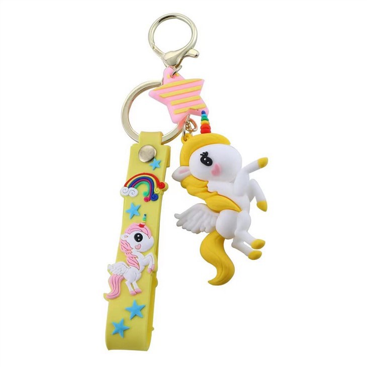 מחזיק מפתחות סיליקון עשוי מתהליך סיליקון, רך, אלסטי ועמיד; התבנית שלו משולבת עם הצמיד. למחזיק המפתחות של התרמיל לילדות יש גמישות מסוימת, והצורה המוטבעת של חד הקרן הצבעונית מאוד חיה ועדינה.