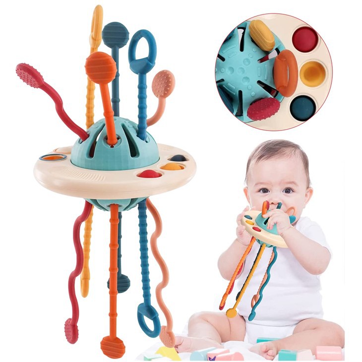 2. צעצוע משיכה מסיליקון מונטסורי ufo כצעצועים חינוכיים לילדים מעל גיל שנה, צעצועי נסיעות לילדים מעל גיל שנה, צעצועי התפתחות לתינוקות, צעצועים לפעוטות לנסיעות במטוס; צעצועי נסיעות לילדים למטוסים, וצעצועים מונטסורי לתינוקות בין שישה לשנים עשר חודשים. הצעצוע החושי הוא נייד והחבר האידיאלי למשחק עבור ילדכם כשהם בחוץ.